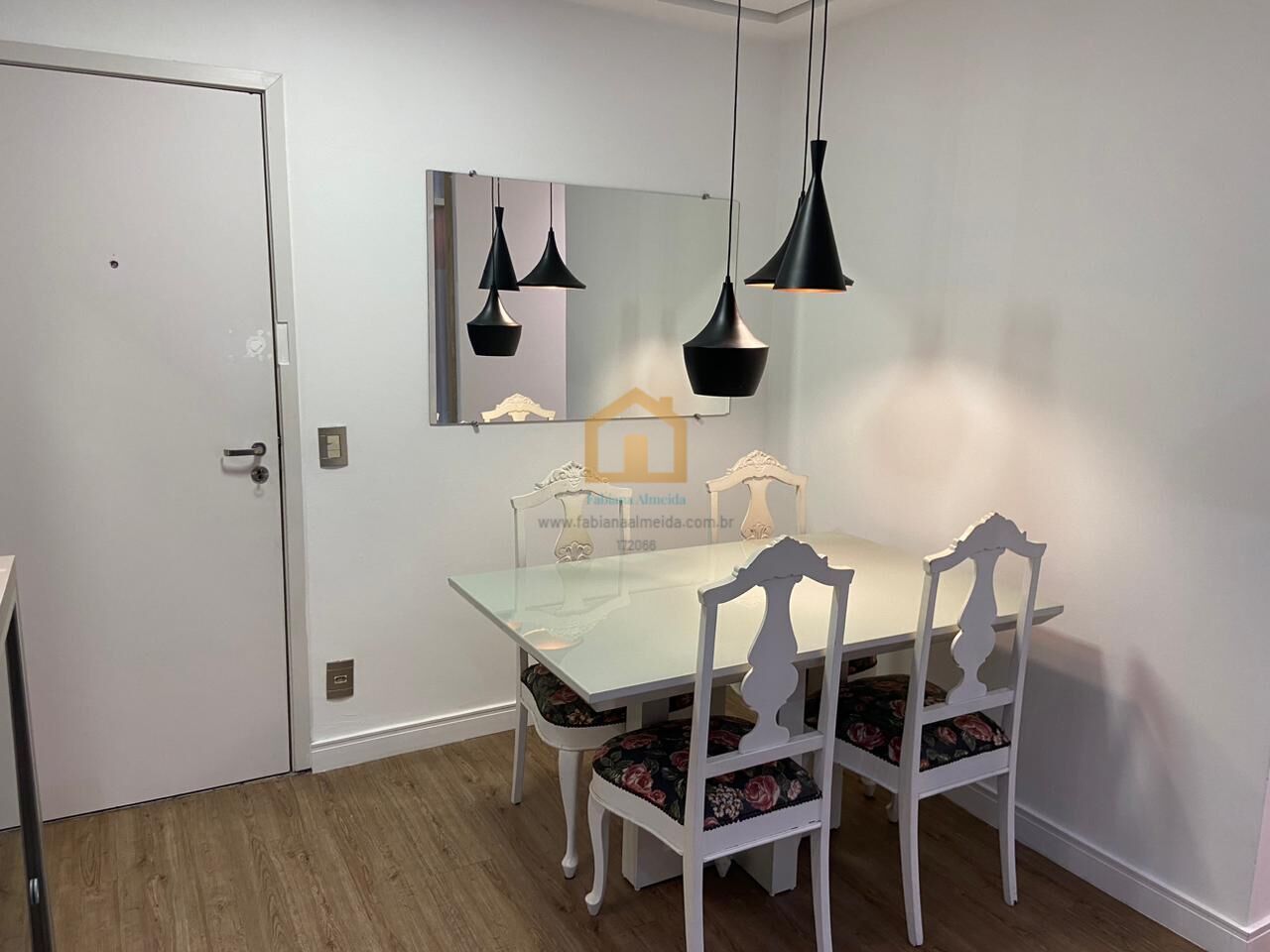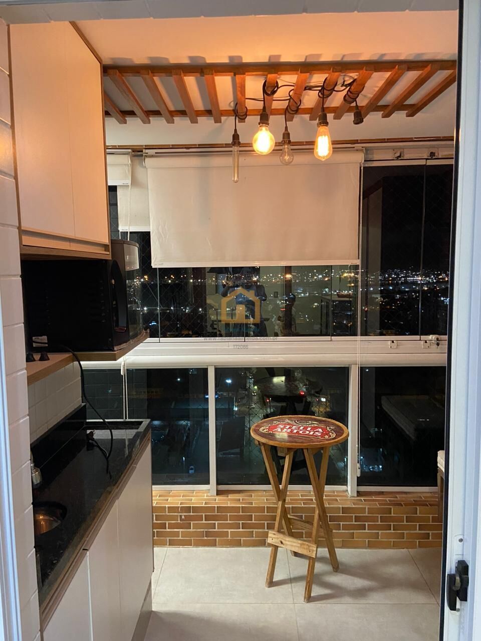 - Sala: Com cristaleira, painel, rack, persianas, lustre e ar-condicionado.