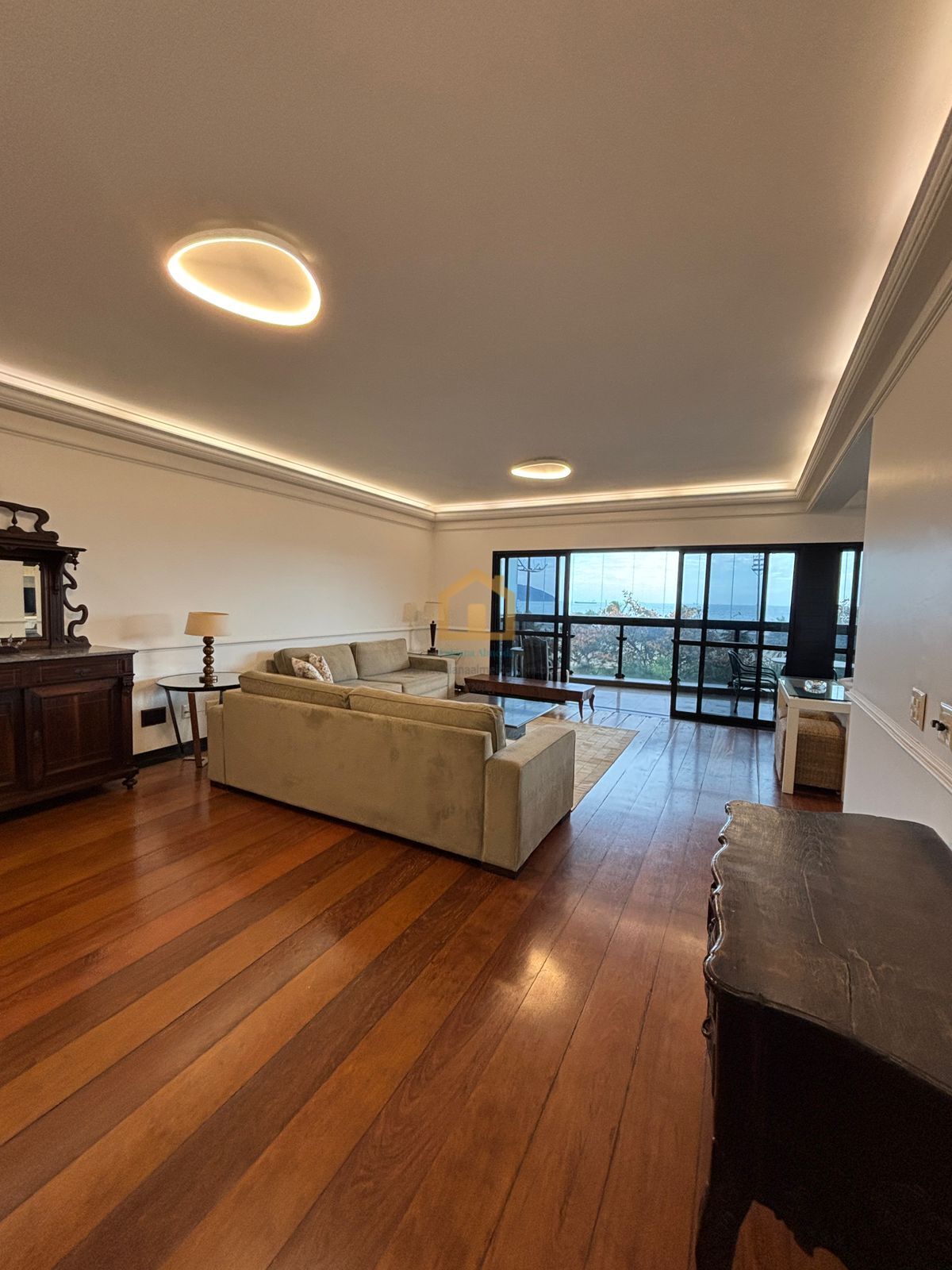 - Acabamentos de alto padrão: tábuas de ipê, porcelanato, gesso com iluminação embutida