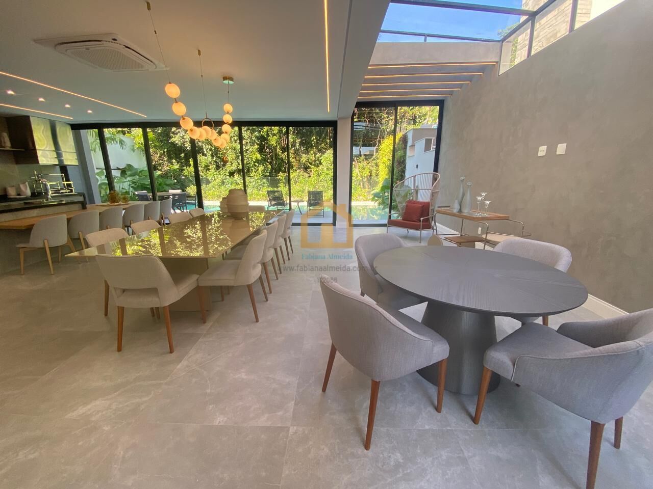 - PERGOLADO decorado com móveis e vidro, no teto.